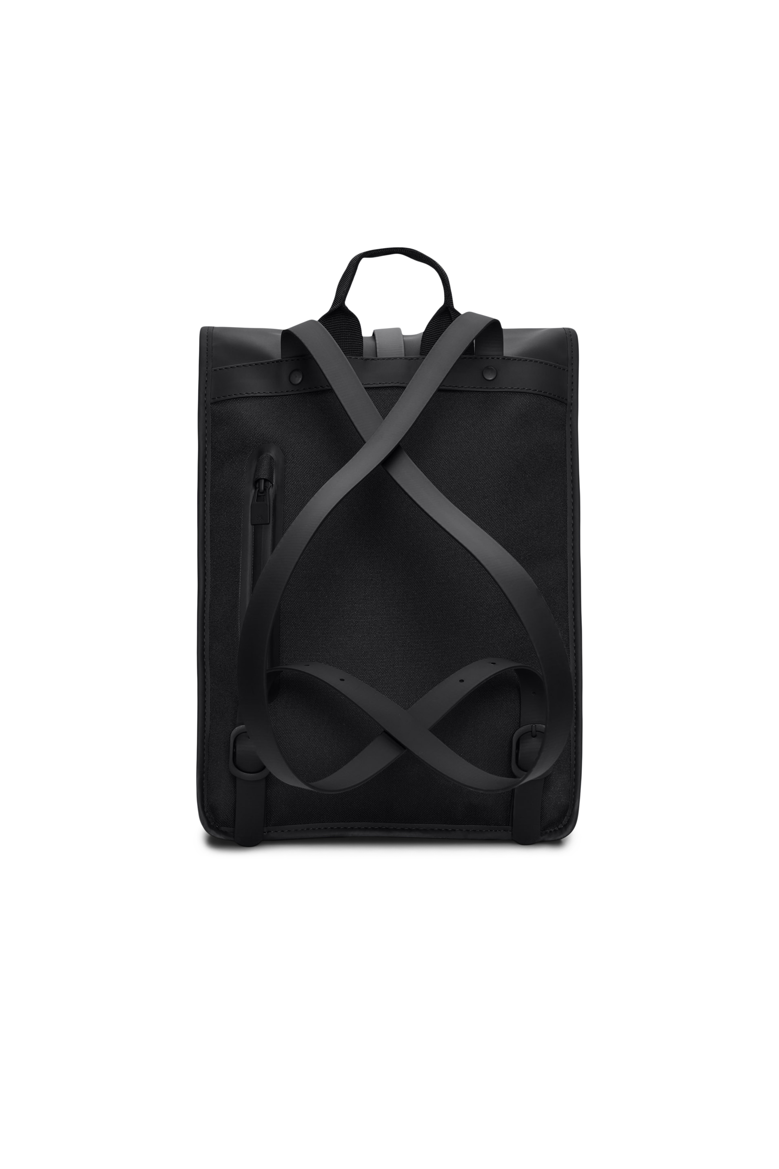 Rolltop Rucksack Mini is carefully designed to keep precipitation out when traveling from point A to Z. To protect essentials from rain, fold the rolltop into a tight scroll and secure using the signature carabiner.