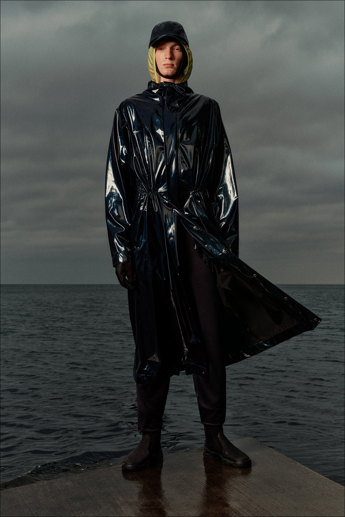 Rains’ core collection delivers new elevated outerwear and pants silhouettes. A minimal, forecast-defying language, articulated through signature coated fabrics. All designs are waterproof, windproof, and lightweight, with engineered ventilation.