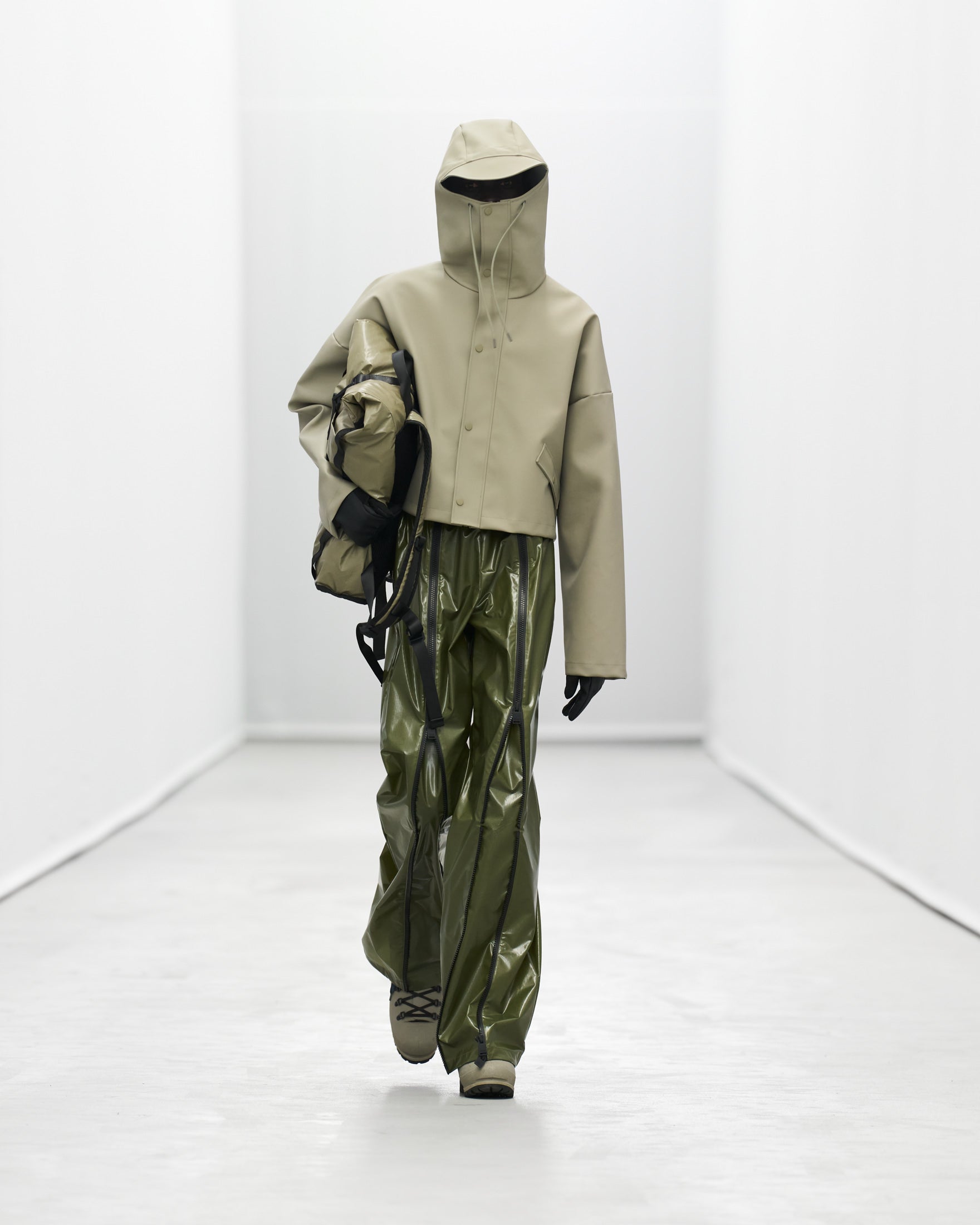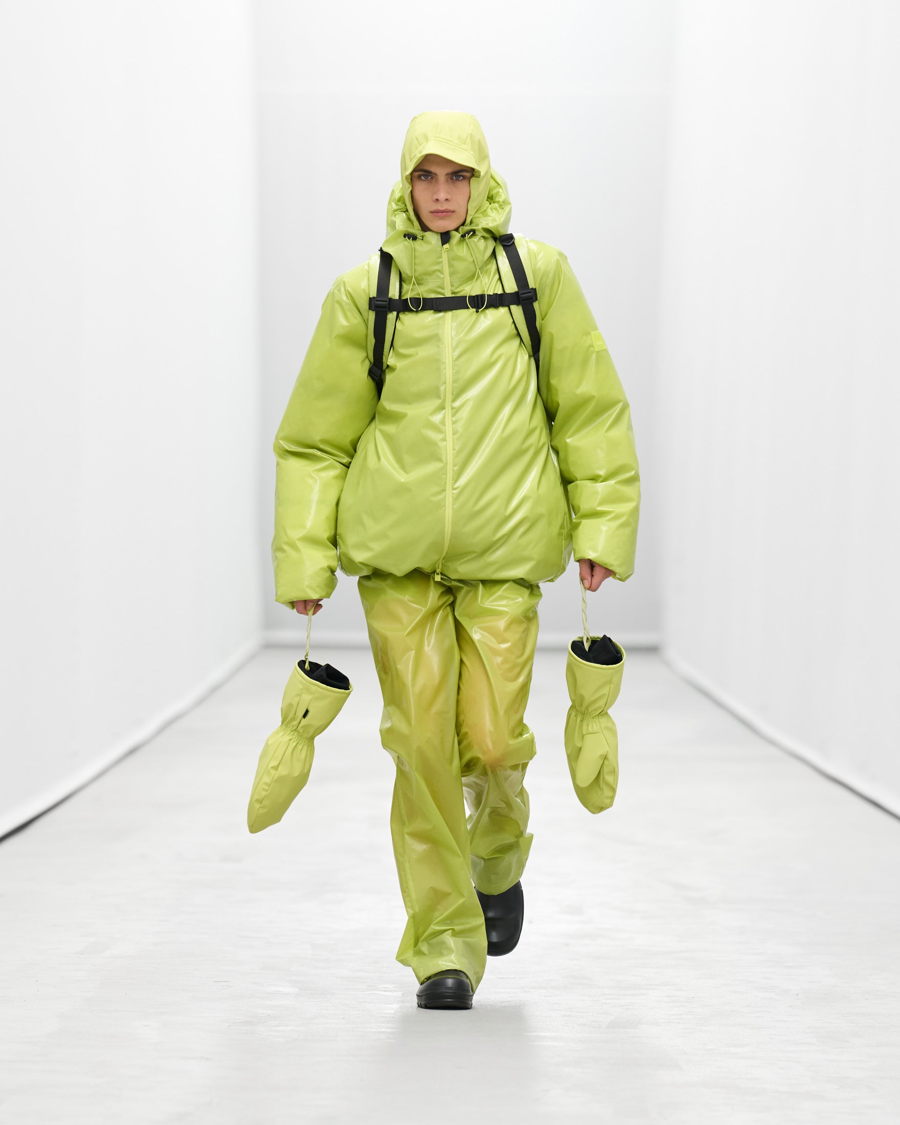 “For this show, we were interested in reinventing staples. Balancing the timeless with the extreme. FOREVER icons meet future icons. Showing not only our progression when it comes to silhouettes, but textures, colors, and design innovation, too. There’s a quiet confidence, a subtle boldness. The show itself evolves—starting with our more muted pieces and building up to a louder finale. Ready for the most extreme weather. ”