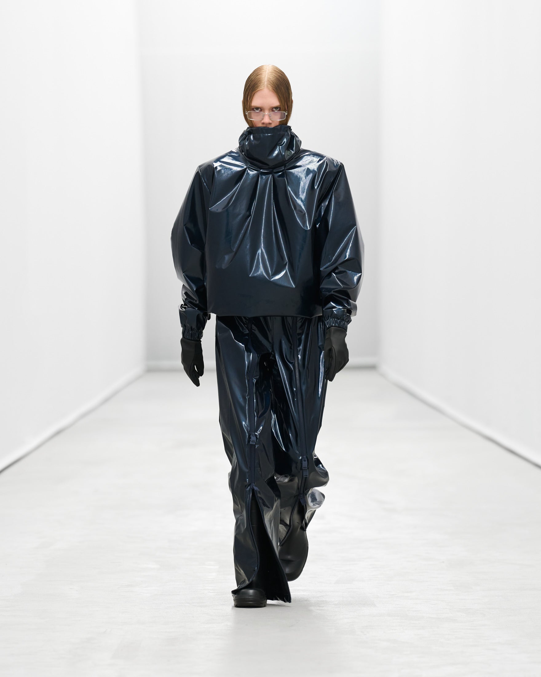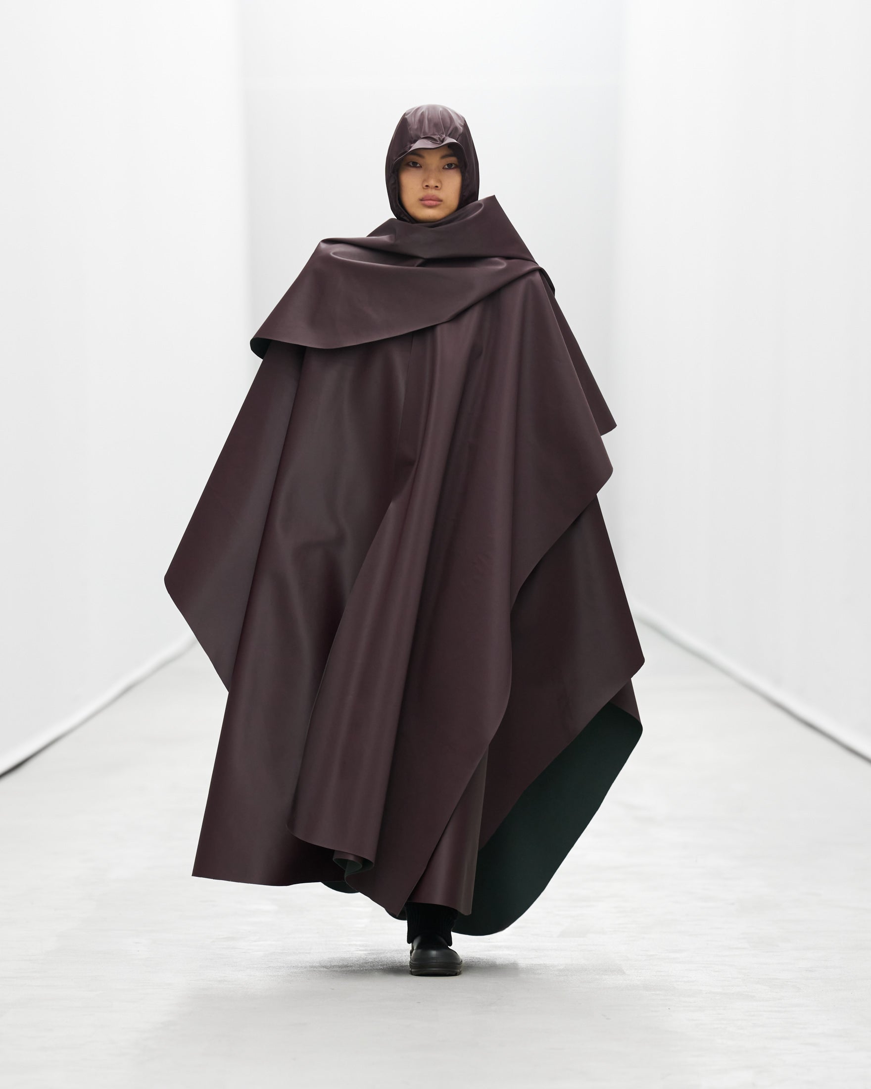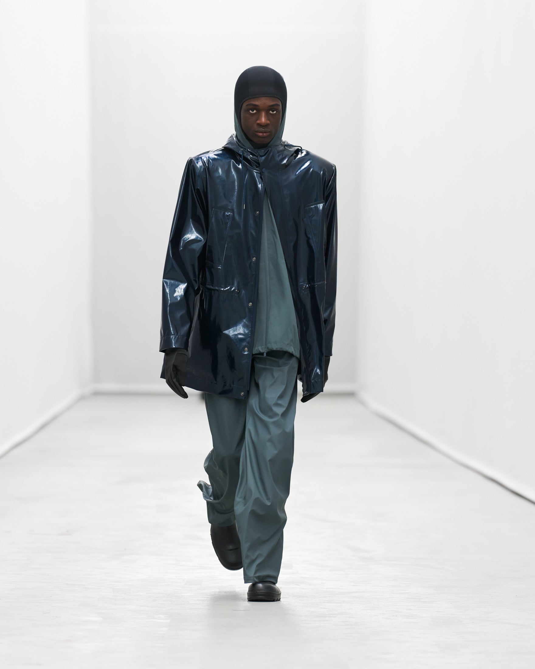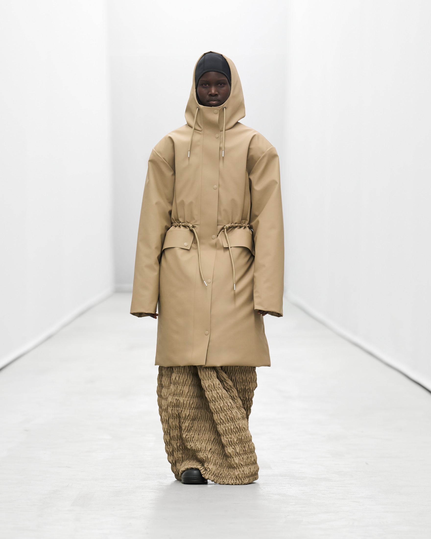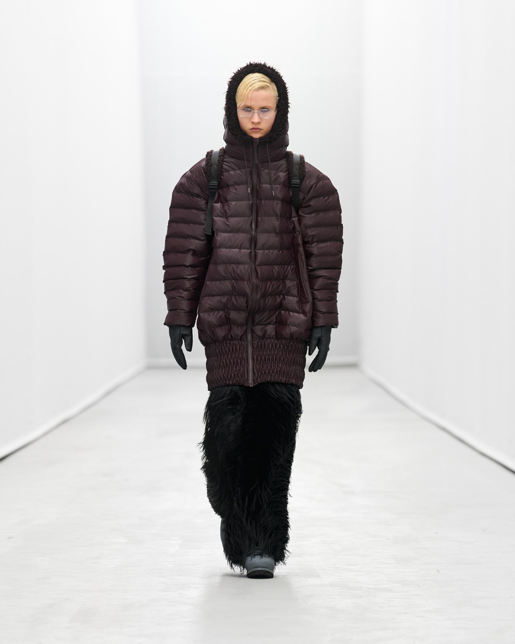 Styled by frequent collaborator Pernille Teisbaek to reflect Rains’ evolution, silhouettes and accessories becomes more extreme as the show goes on.