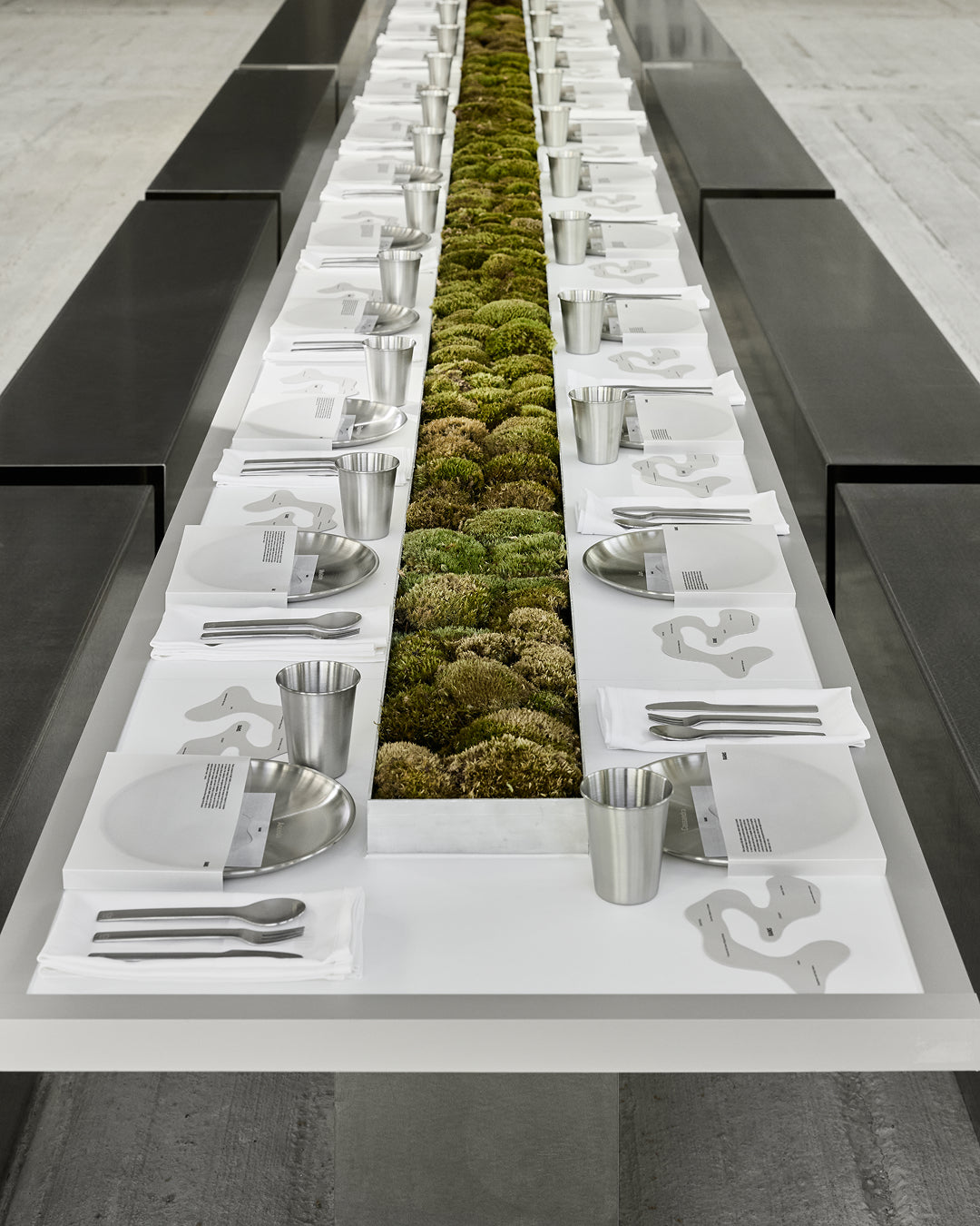 After 5 years, Rains returned to Copenhagen Fashion Week. Not for fashion, but for food. Or, more specifically, to launch our kitchenware collection. Matcha tiramisu and other delicacies were served on our industrial-inspired designs, while a cloud-like structure floated overhead. Explore the space, and installation, below.
