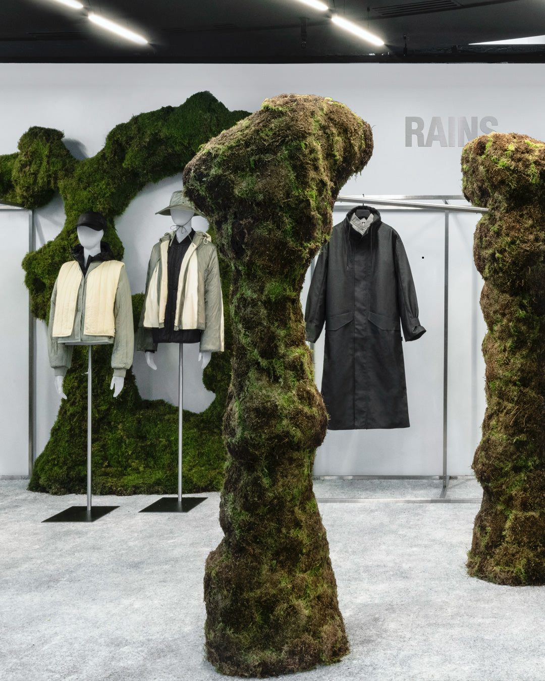 A wall of moss is taking over Citadium’s womenswear section for an exclusive, sensorial pop-up with Rains.
