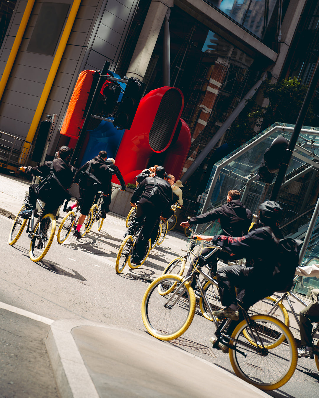 Yellow wheels were spotted from Shoreditch to Embankment as the Rains Bikes made their global debut. The ride, led by BMX rider and videographer Augie, saw 20+ riders come from across the city to take part.