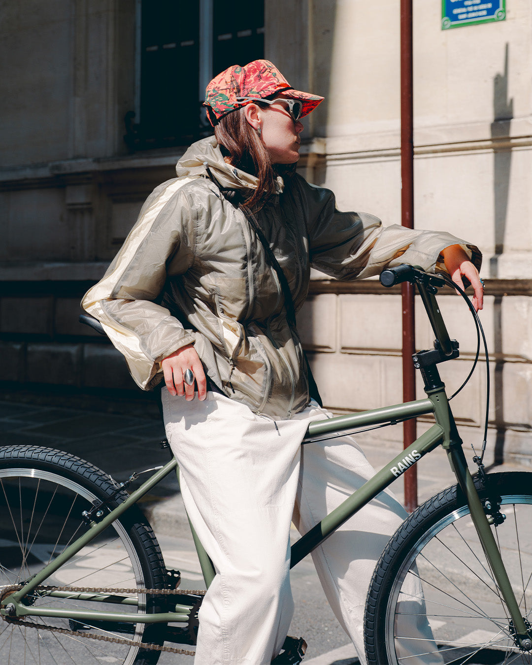 The next stage of Rains Bike summer took place in Paris—a place famed for its aesthetics. Guests were gifted Bike 02 — finished in sleek khaki — to use when weaving through the city’s iconic avenues and along the Seine.Â