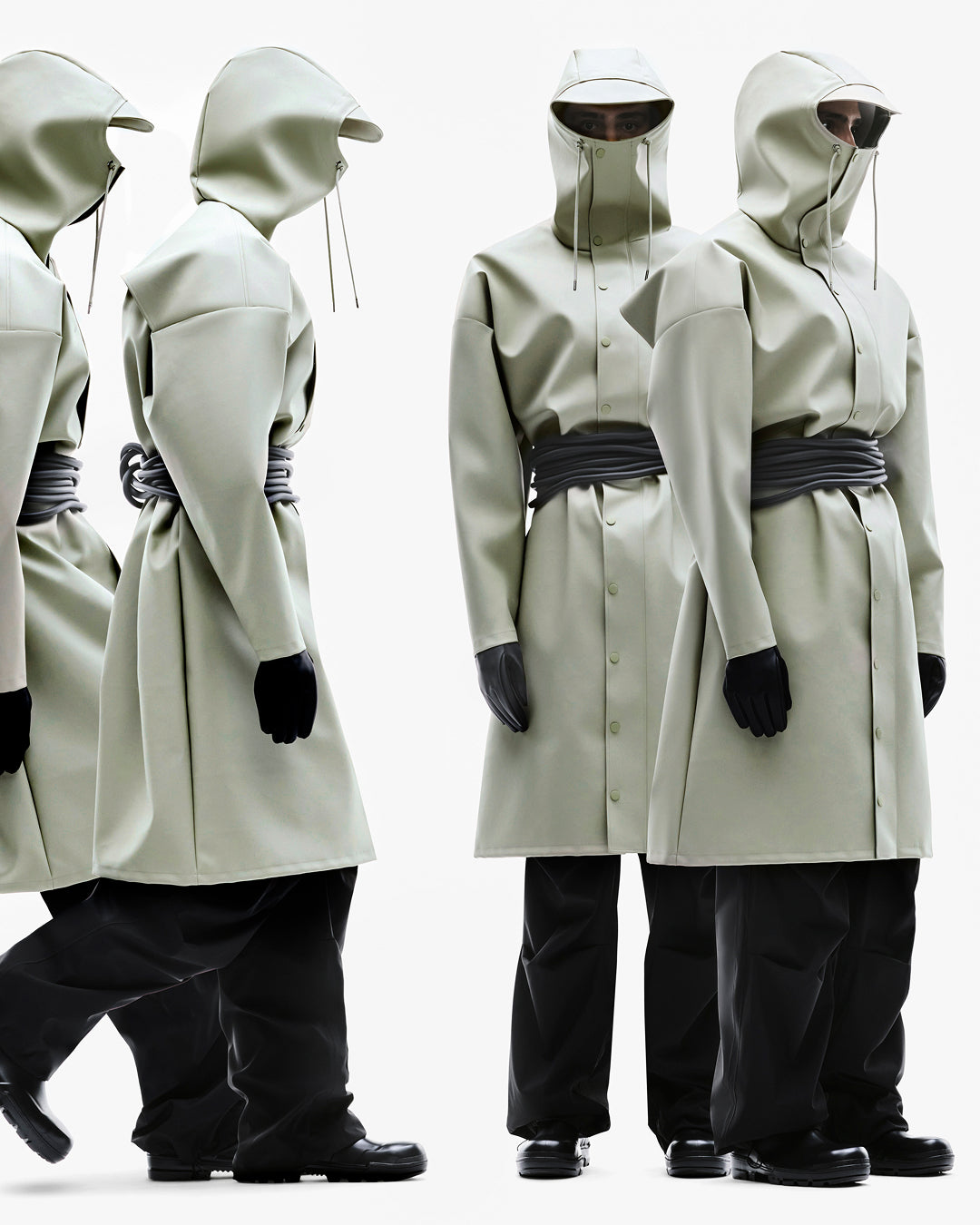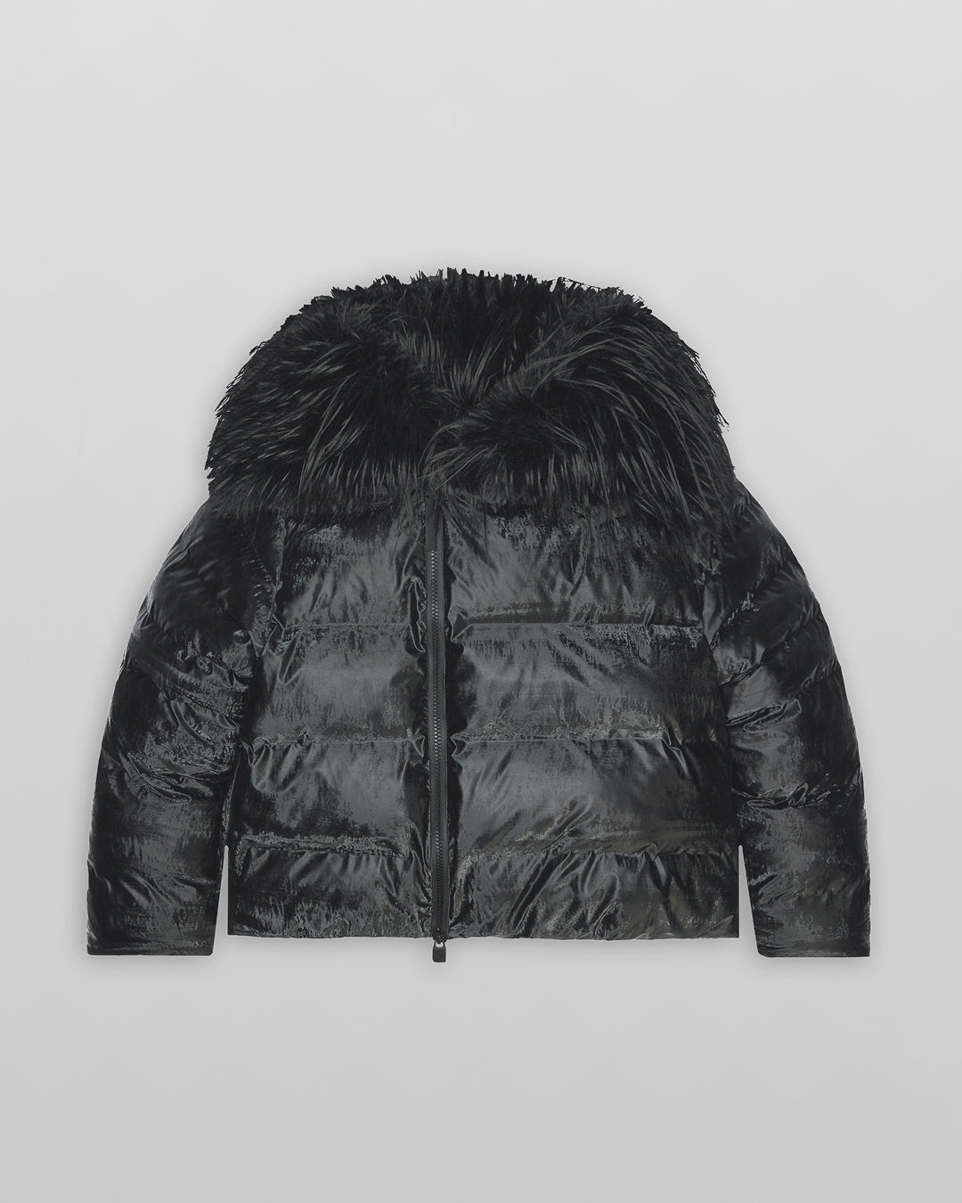 Reimagined for the runway. A waterproof PU body with an extreme, insulated fleece collar.Â