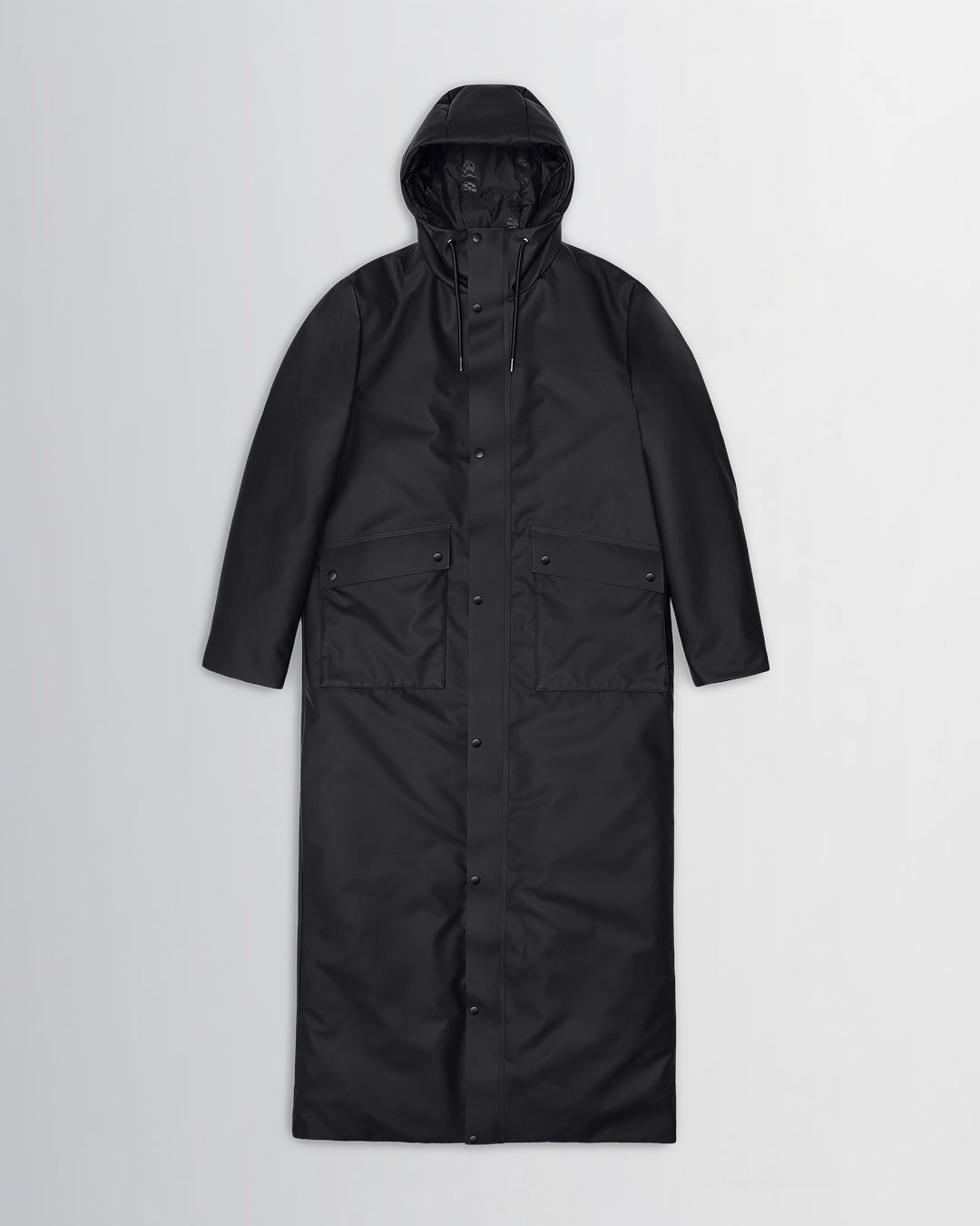 Exaggerated protection. A longline silhouette with flat padded insulation.